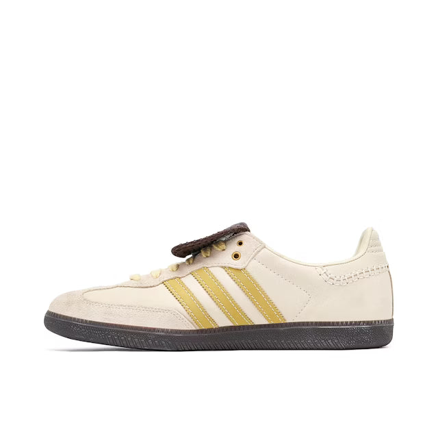 Step into a unique blend of heritage and contemporary style with the Adidas Samba x Wales Bonner in Beige Yellow. This collaboration reimagines the classic Samba silhouette with refined details and a warm, versatile color palette. Crafted for comfort and durability, these sneakers elevate your everyday look while honoring timeless design. Perfect for those who appreciate subtle sophistication and standout quality in their footwear.